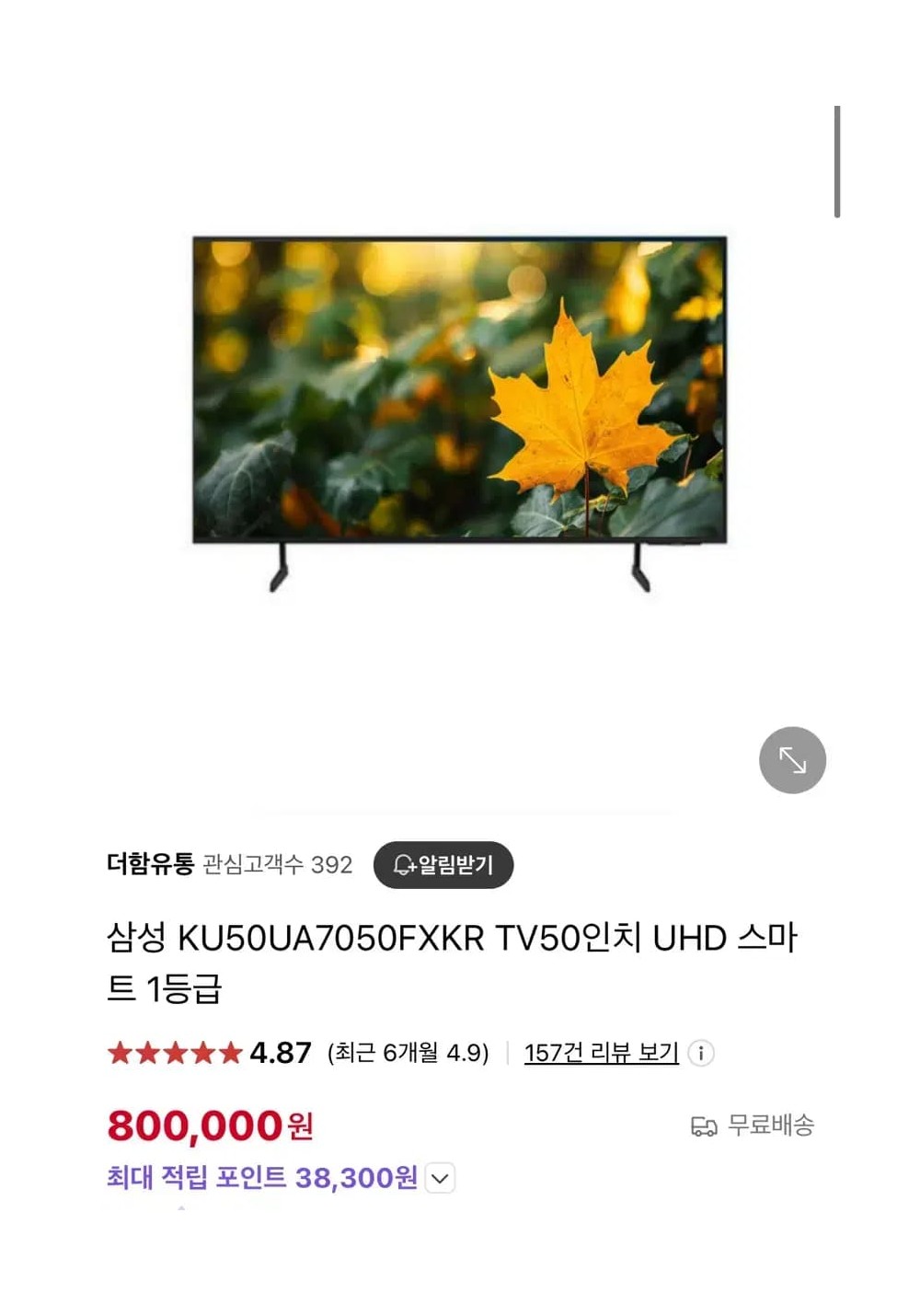 삼성 tv 50인치 요약정보 및 구매